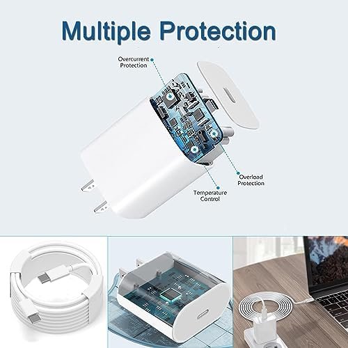 - Safe, efficient and fast charger USB C wall charger built-in multiple protection system design, can avoid over voltage, over current, overheating and other hazards. Safe and effective protection of your Phone, 6.6ft long cable, can ensure that you in bed or when traveling can simultaneously charge use.